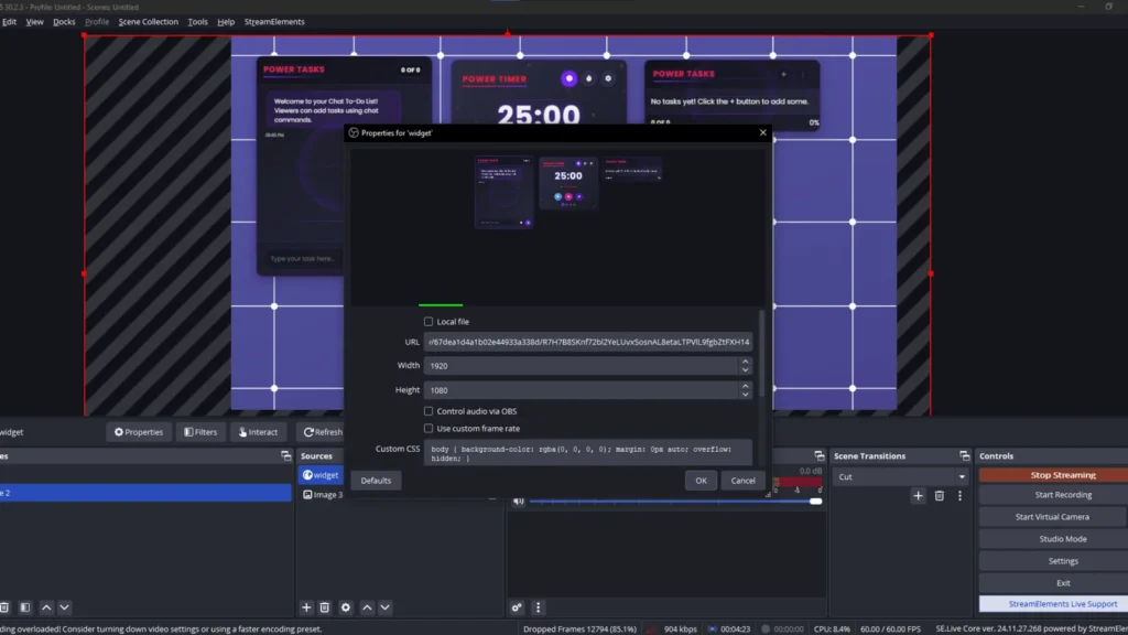 This guide walks through the process of loading widgets in StreamElements and OBS Studio, ensuring a smooth and professional-looking stream.