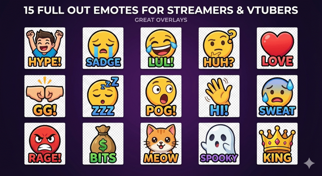 That’s why having good emotes is super important, maybe even more than people think. At greatoverlays, we’ve made two emote sets that are designed to get people chatting: