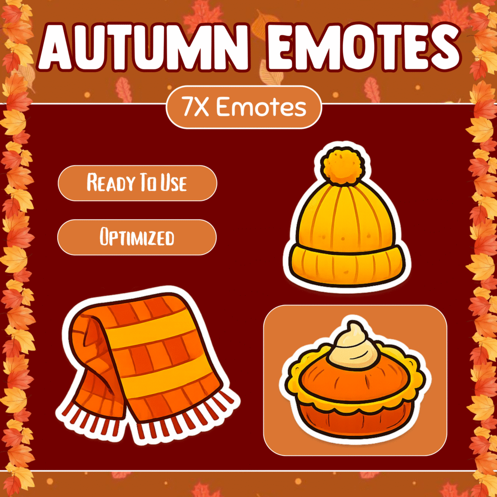 Autumn Emotes bring warmth, charm, and personality to your stream. Moreover, these emotes enhance engagement, branding, and emotional connection. Therefore, every streamer benefits from seasonal visuals.