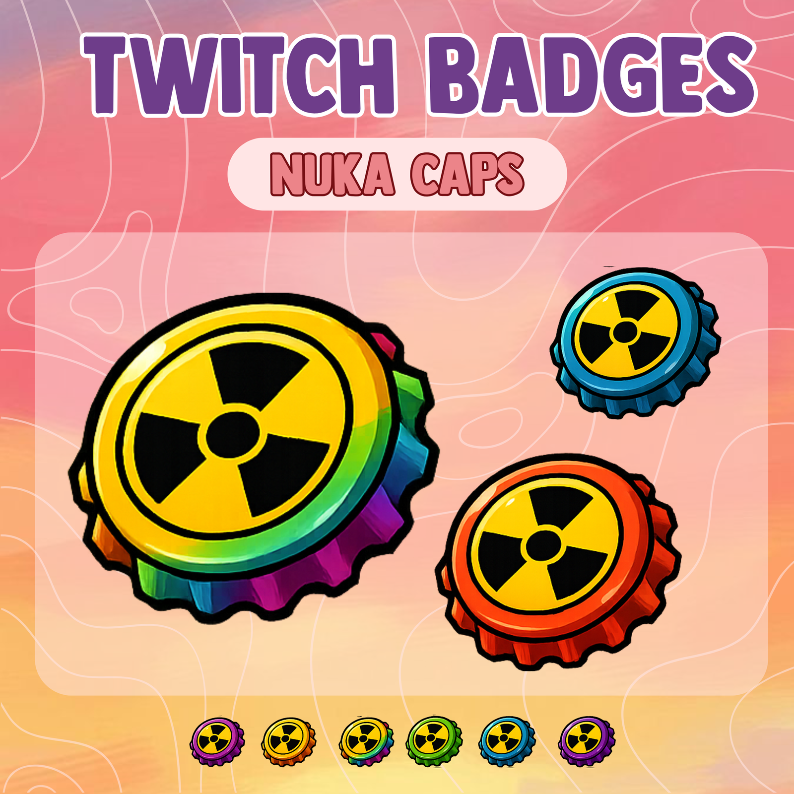 This Nuka Cola Sub Badges pack includes a full set of subscriber badge variations, so you can support monthly, quarterly, yearly, and long-term milestones. You get several colors, cap variations, and glow levels. Also, each file arrives in clean PNG format, so you can upload everything instantly.