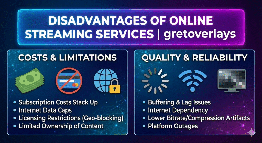 Online streaming has completely changed how people watch movies, TV shows, and live content. At GreatOverlays, we analyze both sides of streaming services so users can understand the real advantages and disadvantages of digital streaming. While streaming offers unmatched flexibility and content access, it also comes with limitations that are important to know.